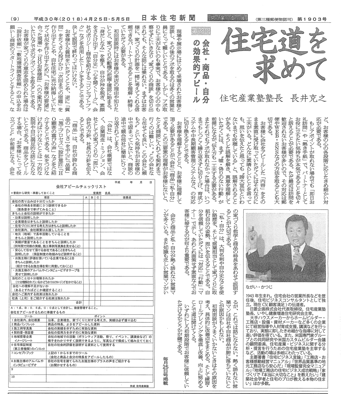 現場や展示場にはじめて来場されたお客様と面談し、その後のアポを取るのは多くの営業社員にとって難しいことである。 しかし、アポ取りに工夫がないのも事実で、お客様の心の中も察せずにいきなり“家づくりの商談”を切り出されてもそんな話には乗れない。...