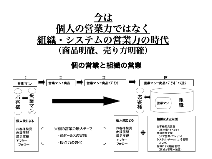 今、賃貸などの活況で住宅業界は順調であるが、消費税アップで2年後以降の注文住宅営業はかつてない厳しい状況を迎えることが予測される。 商品力低下や、営業マンの知識力・商談力・行動力が不足し、情報も氾濫し、集客率の悪化、商談の長期化、成約率の低下に輪をかけてしまうだろう。受注を取るための基本を見失ったかに思われる時が来る。そのため今こそ―できればこの一年以内で売る営業の仕組みを再構築しなければならない。
